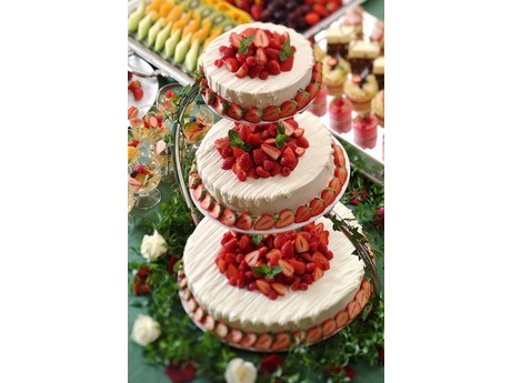 婚礼パーティーのウエディングケーキやマジパン、