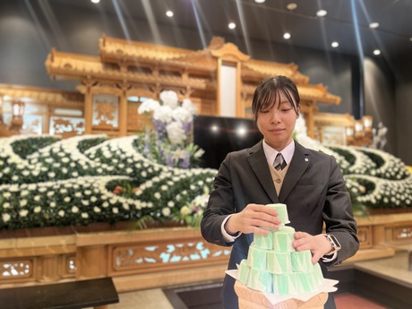 ※葬儀がない時は、見学のお客様対応や中陰壇のお引き取り、斎場内イベントの企画運営を行います。