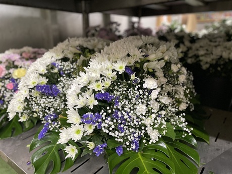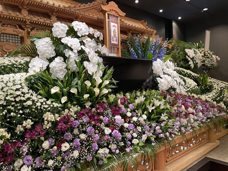やわらぎ斎場で葬儀を行う際の花祭壇や供花スタンドなどの制作、